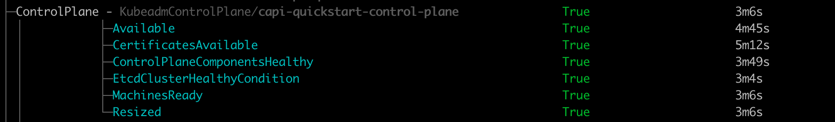 only the ready condition). e.g. with --show-conditions KubeadmControlPlane you get: