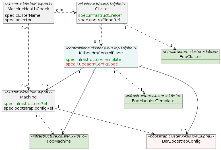 There are many resources that appear in the Cluster API. In this section, we use diagrams to illustrate the most common relationships between Cluster API resources.